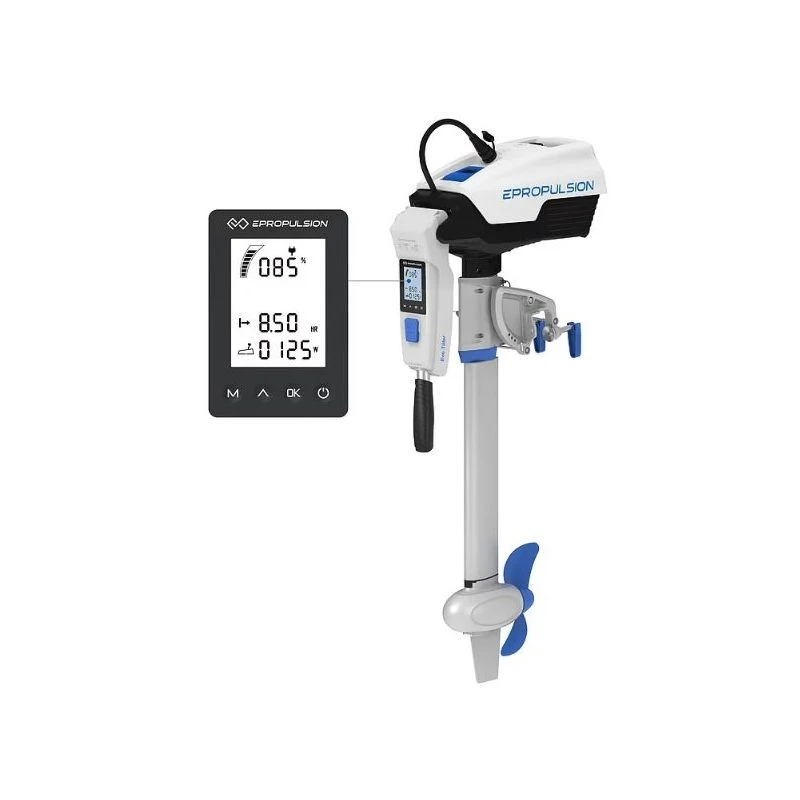 Le panneau de commande convient aux moteurs SPIRIT Evo et NAVY Evo et offre un affichage numérique pour une surveillance en temps réel de la puissance, de l’autonomie restante, du niveau de la batterie, de la tension, etc. Il dispose d’un démarrage électrique facile en appuyant sur un bouton pour éviter les difficultés liées au tirage du cordon de démarrage.